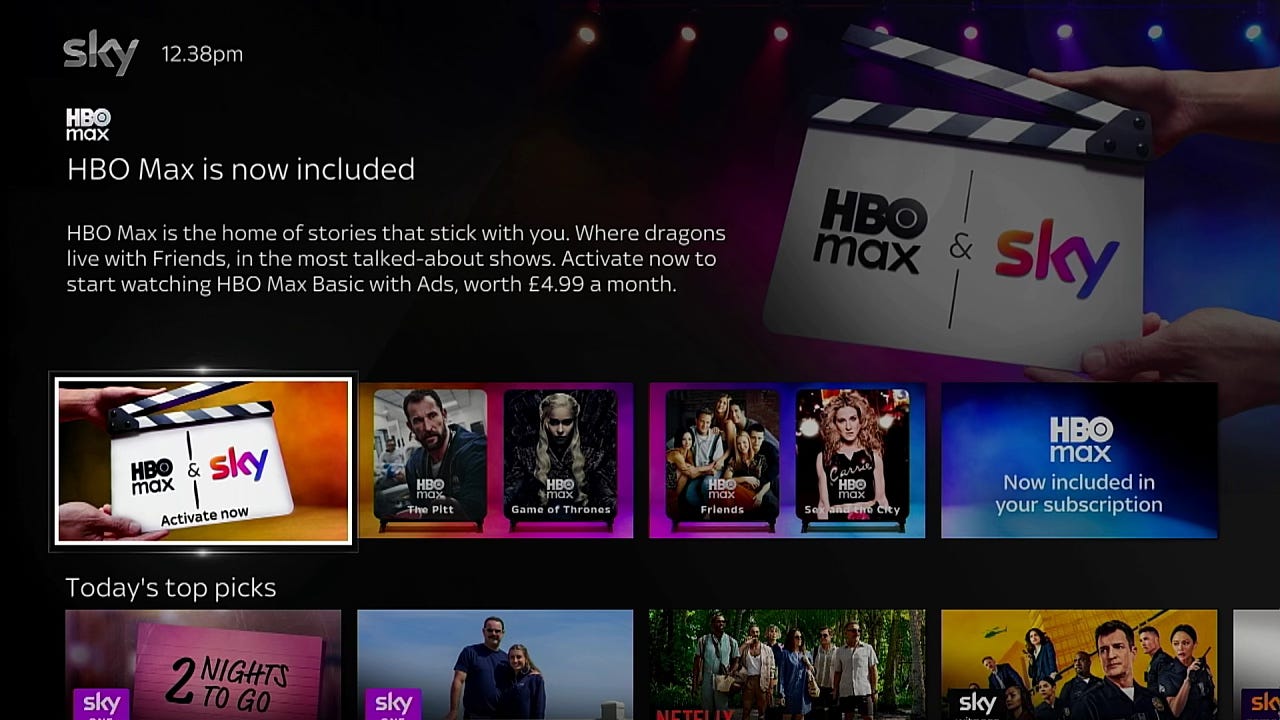 The logic behind that decision is clear. UK Sky pay TV subscribers get HBO Max's Basic with Ads tier included in their existing subscription as part of a commercial arrangement between the two companies. Both parties have a shared interest in driving activation from day one: HBO Max needed activation among Sky's existing base and Sky needed its subscribers to see value in what their subscription now included.