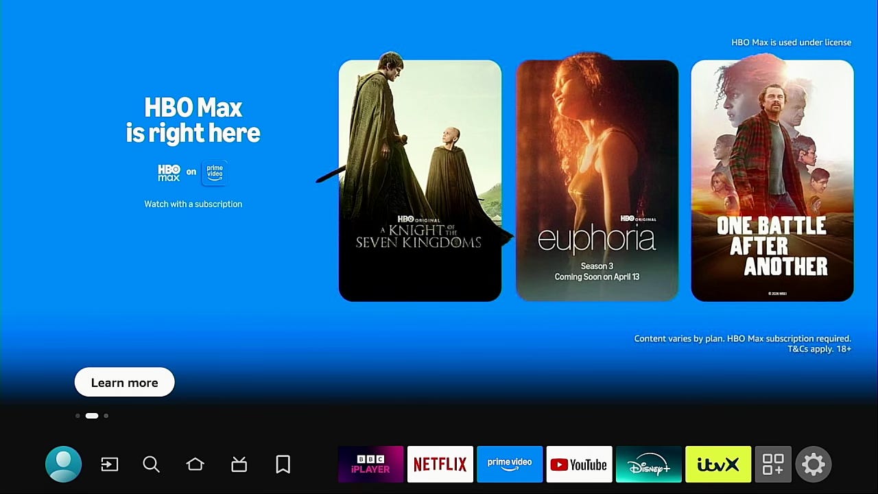 In our 2nd edition of Above the Fold, in partnership with Looper Insights, we tracked HBO Max’s merchandising tactics and performance on launch day across several UK TV environments focusing on homepage banners, featured rows and promotional integrations.