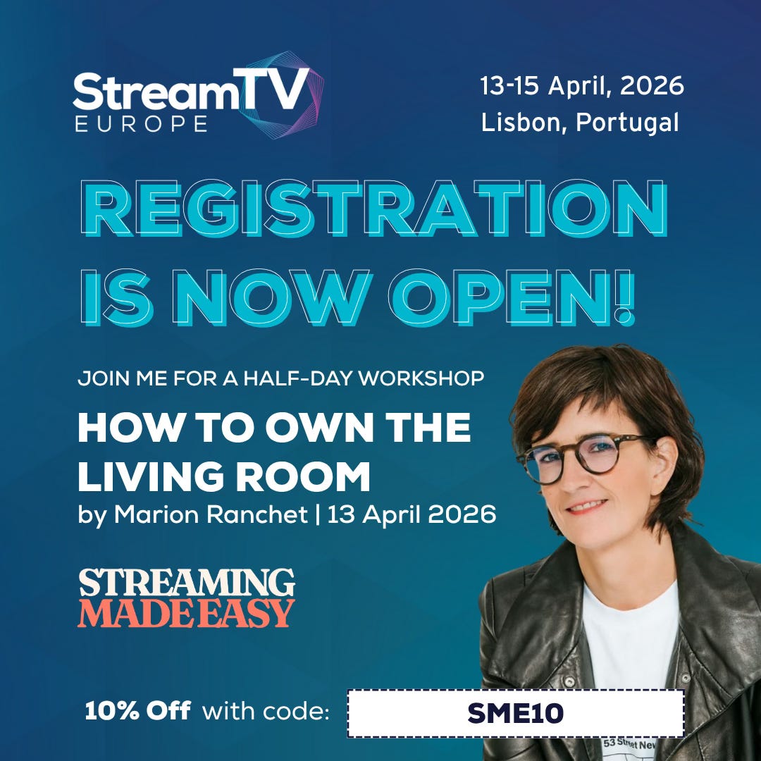 If you want to share your experience on how to own the living room in 2026 and beyond, ping me. I’m looking for streamers, CTV platforms and telcos to showcase how they navigate this highly demanded but fragmented ecosystem.