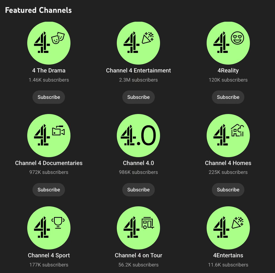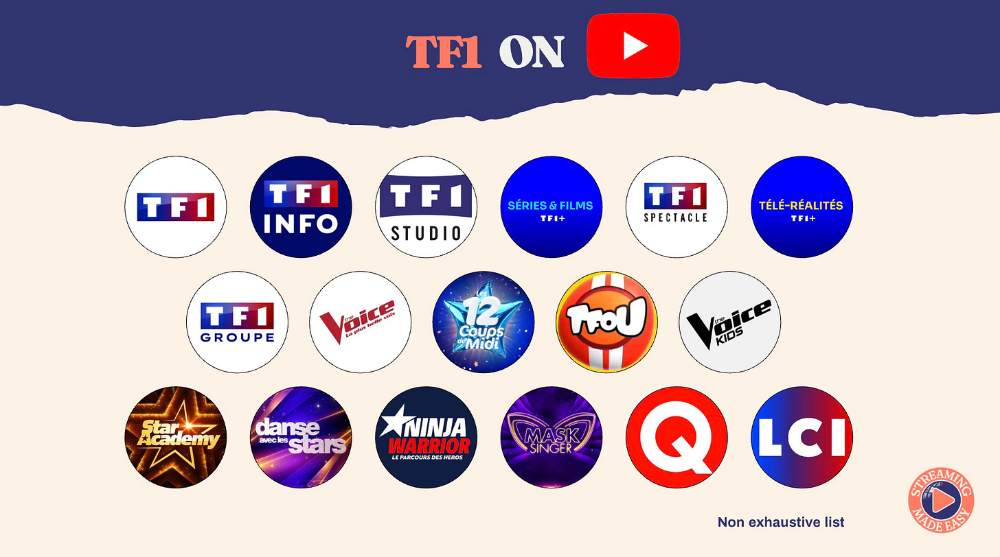 Disclaimer n°1: It’s a non exhaustive list of the TF1 channel portfolio on YouTube. Why? Given that TF1 doesn’t use the featured channel option on YouTube, I had to rely on channels with the brand TF1 in the name and my knowledge of their IP portfolio. Bless Channel 4 for doing it which enables users to navigate from one channel to the other (and made my job easier in this piece dedicated to UK broadcasters on YouTube).